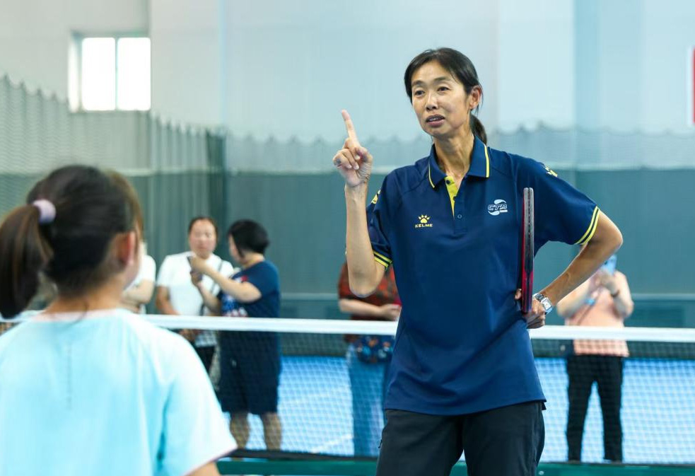李婷指导临汾市的青少年爱好者打球。新华网发