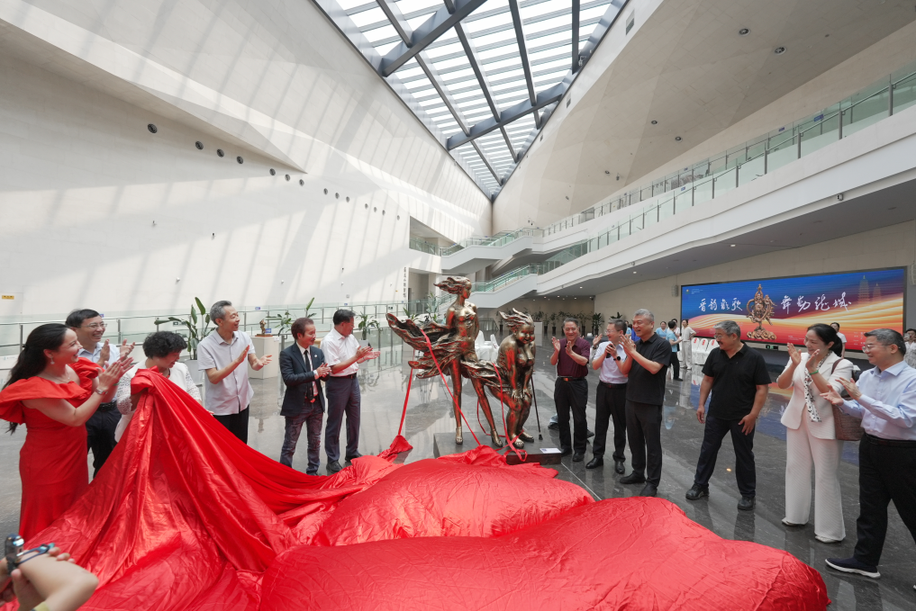 嘉宾们为雕塑作品揭幕。新华网 发