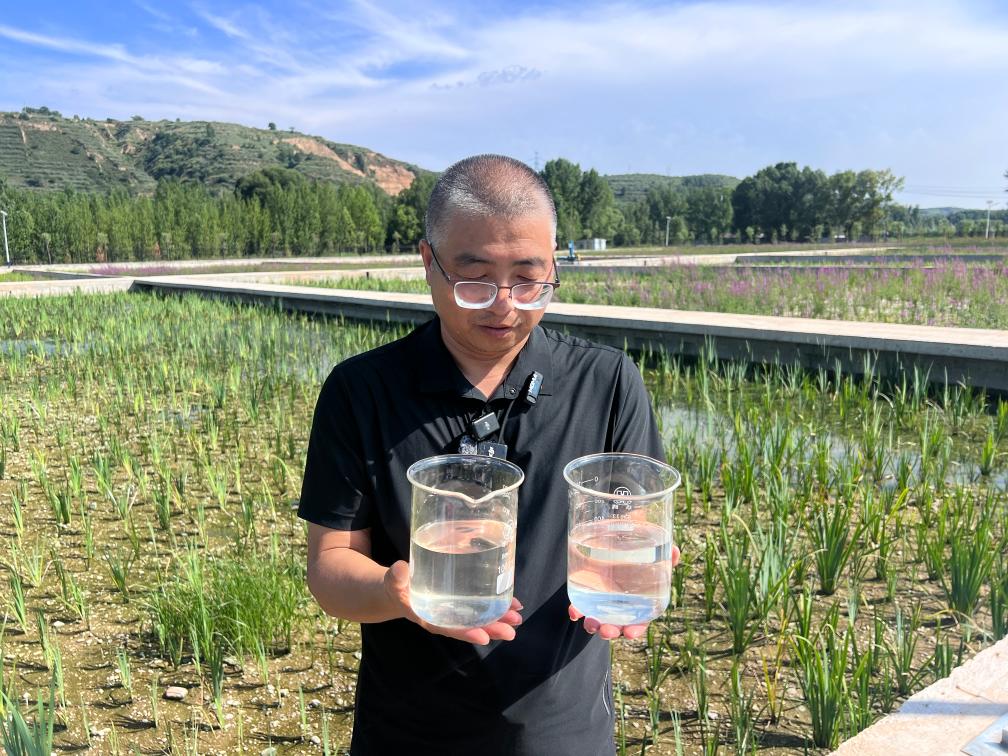忻州市生态环境局静乐分局水执法中队长段治军说,尾水湿地实现了区域再生水循环利用,可以起到保护生物多样性、涵养水源的作用,有效保障了汾河河西村国考断面水质稳定达标。