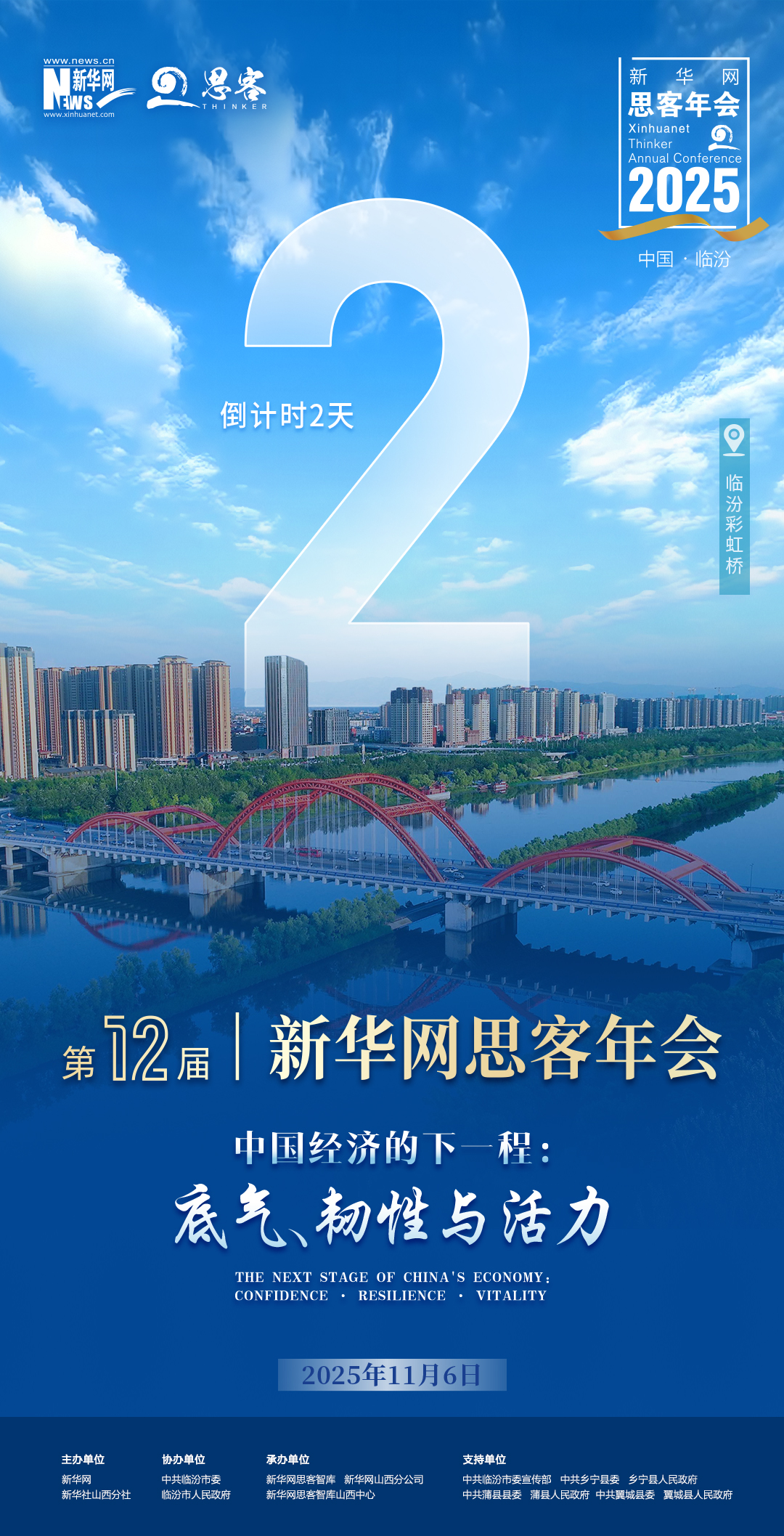 2025年11月6日,新华网思客年会将在山西省临汾市举行,主题为“中国经济的下一程——底气、韧性与活力”。