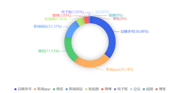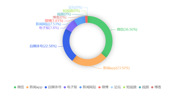 截至目前,该文章在互联网上传播总量共371篇。各信源的信息发布情况中,微信占比最大,其次是新闻app。(数据来源:新华睿思·数媒智慧分析平台)