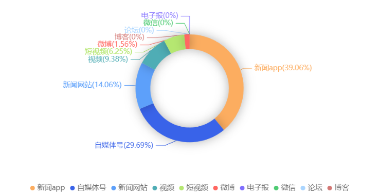 截至目前,该文章在互联网上传播总量共64篇。各信源的信息发布情况中,新闻app占比最大,其次是自媒体号。(数据来源:新华睿思·数媒智慧分析平台)