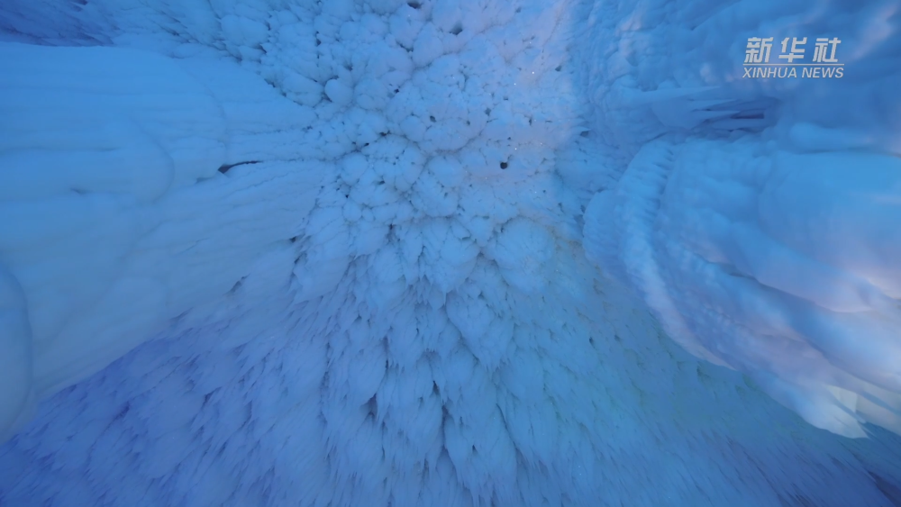 位于山西省乡宁县的云丘山冰洞群,四壁皆冰,常年不化。目前开放的1号冰洞总长100余米,最宽处约12米,最高处约15米。洞中的冰笋、冰柱、冰瀑晶莹剔透,在灯光的照射下呈现出梦幻般的景象。(邓浩然、裴元新、李泽晨)