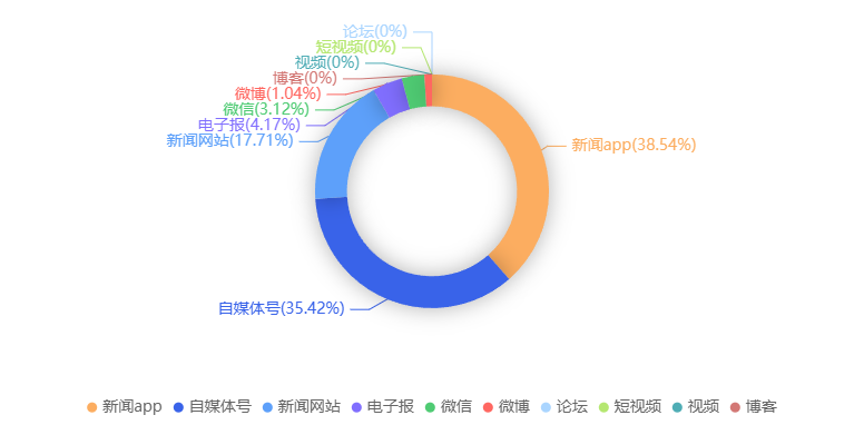 截至目前,该文章在互联网上传播总量共96篇。各信源的信息发布情况中,新闻app占比最高,其次是自媒体号。(数据来源:新华睿思数据云图分析平台)