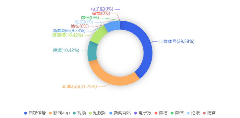 截至目前,该文章在互联网上传播总量共48篇。各信源的信息发布情况中,自媒体号占比最高,其次是新闻app。(数据来源:新华睿思数据云图分析平台)