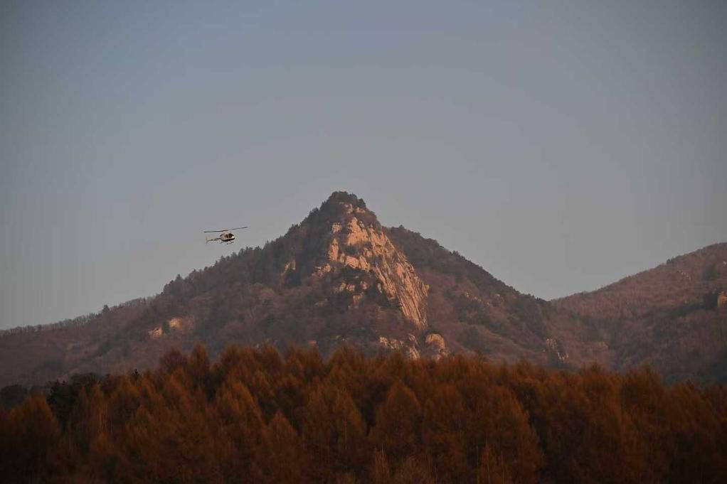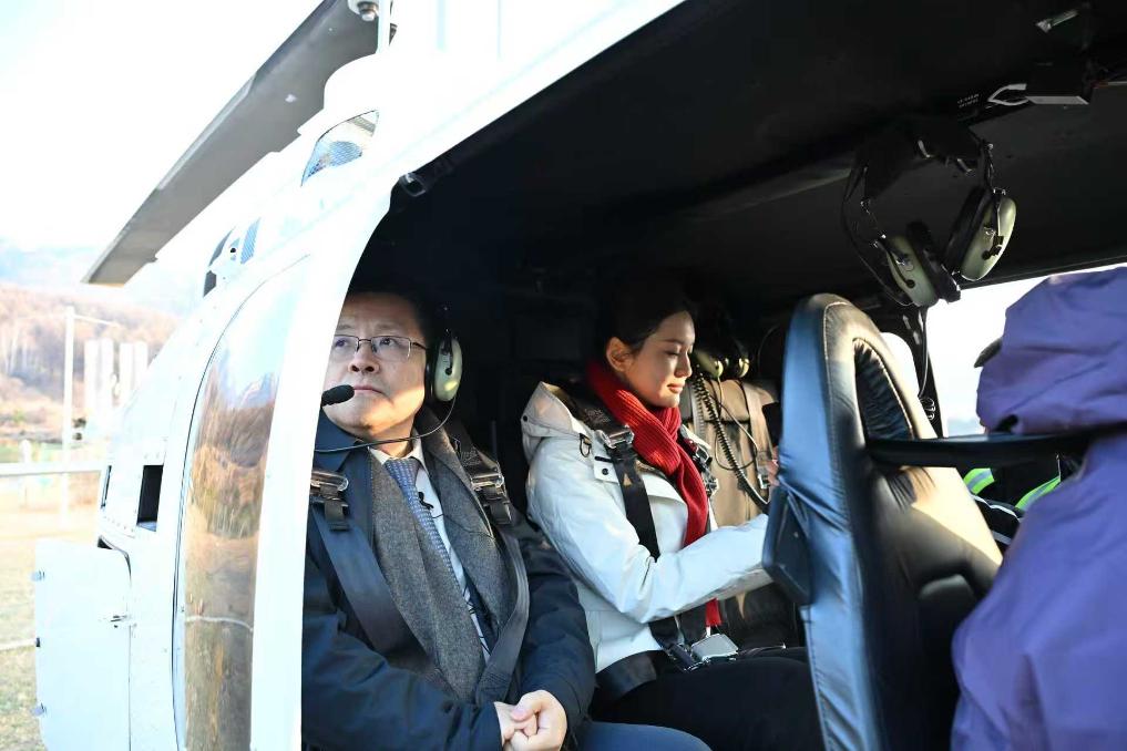 秦朔体验大东沟森林旅游度假区的直升机项目。