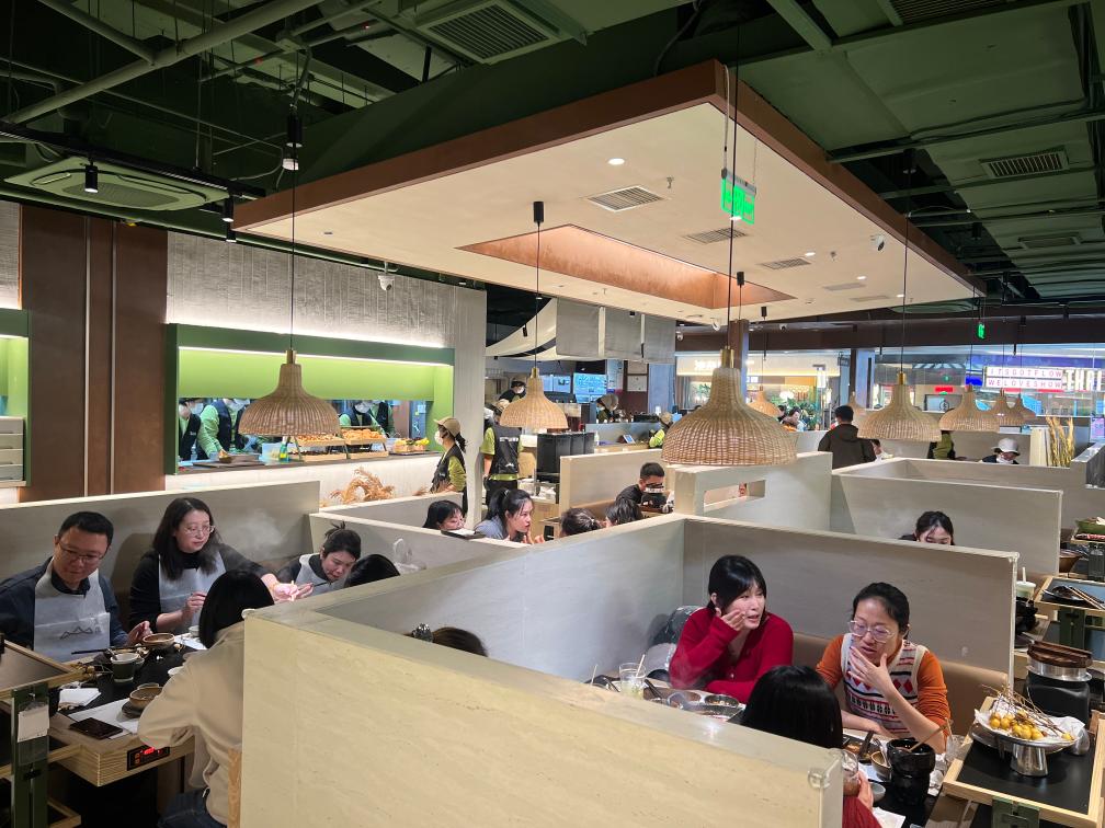 临近跨年零点,山缓缓餐厅山西首店还有一些顾客在排队候餐,期待尝鲜“山野风”火锅。山缓缓品牌北区运营总监王志刚说:“跨年当日我们店的营收额突破8万元。”餐饮在新风格和新体验上迭代升级,区域首店也更能激发消费者热情。