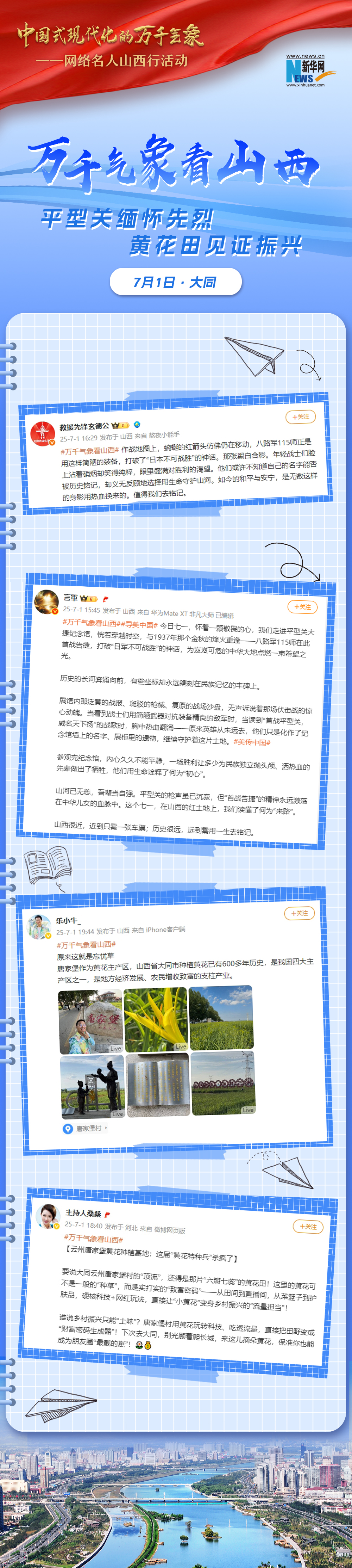 7月1日,“中国式现代化的万千气象”网络名人山西行活动进入第二天。来自全国各地的网络名人代表继续大同行程,深入探寻这片土地上的红色记忆与乡村振兴的生动实践。