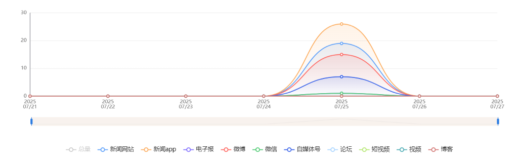 截至目前,该文章在互联网上传播总量共26篇。各信源的信息发布情况中,新闻app占比最大,其次是新闻网站。(数据来源:新华睿思数据云图分析平台)