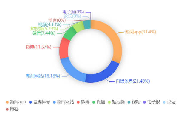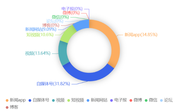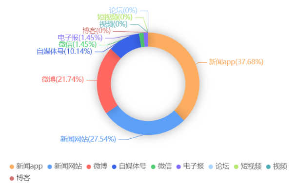 截至目前,该文章在互联网上传播总量共69篇。各信源的信息发布情况中,新闻app占比最大,其次是新闻网站。(数据来源:新华睿思数据云图分析平台)