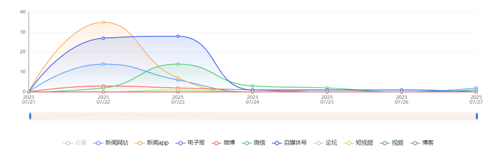 截至目前,该文章在互联网上传播总量共66篇。各信源的信息发布情况中,新闻app占比最大,其次是新闻网站。(数据来源:新华睿思数据云图分析平台)