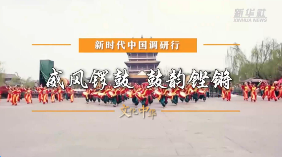 晋南威风锣鼓,最早的名称为“锣鼓”,是流行于山西省晋南地区的一种民间打击乐艺术形式。2006年,晋南威风锣鼓入选国家级非物质文化遗产代表性项目名录。其融音乐、舞蹈、技艺于一体,富有民族特色,有“天下第一鼓”的美誉。(新华社记者张哲)