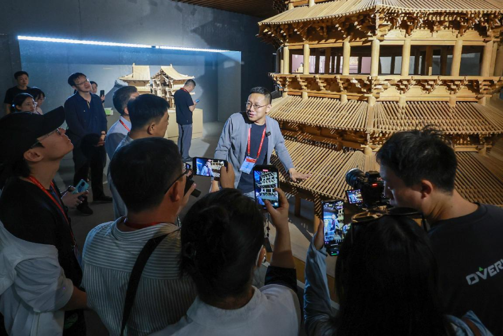 随后,网络名人代表团一行来到定襄县宏道镇。这里坐落着晟龙木雕古代建筑模型展示馆,是全国重要的木雕古建筑模型生产基地。在这里,山西的应县木塔、华严寺、晋祠圣母殿以及中国四大名楼等不可移动的古建,变成可携带、可拆组的木雕模型。