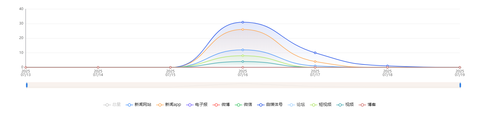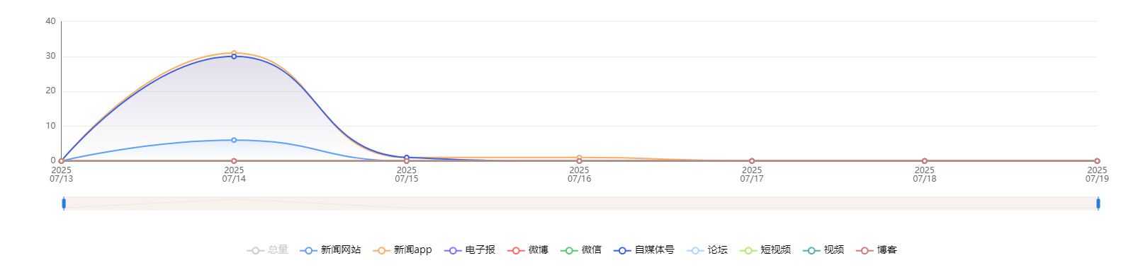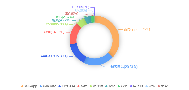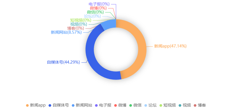 截至目前,该文章在互联网上传播总量共40篇。各信源的信息发布情况中,新闻app占比最大,其次是自媒体号。(数据来源:新华睿思·数媒智慧分析平台)