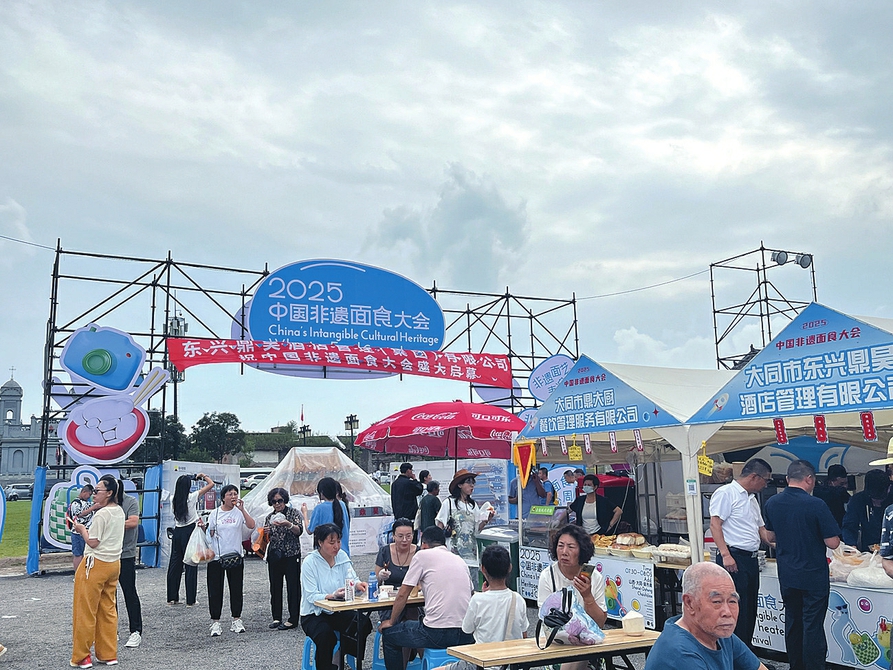 8月3日,位于大同古城的2025中国非遗面食大会暨山西非遗消费季(夏季)活动现场人头攒动,来自各地的非遗面食惊艳着四方游客。