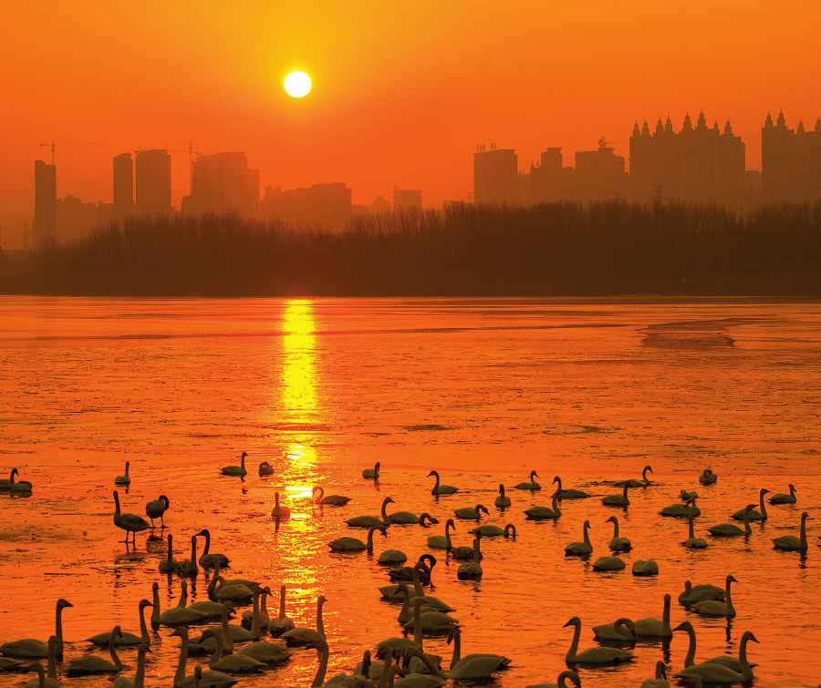 河南三门峡天鹅湖国家 城市湿地公园(资料照片 ) 杜杰摄 / 本刊