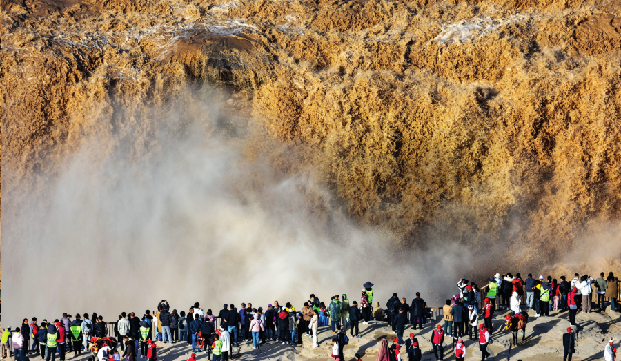 游客在山西省临汾市吉县 黄河壶口瀑布景区游览观瀑 (2024 年 10 月 2 日摄 ) 刘宏达摄 / 本刊