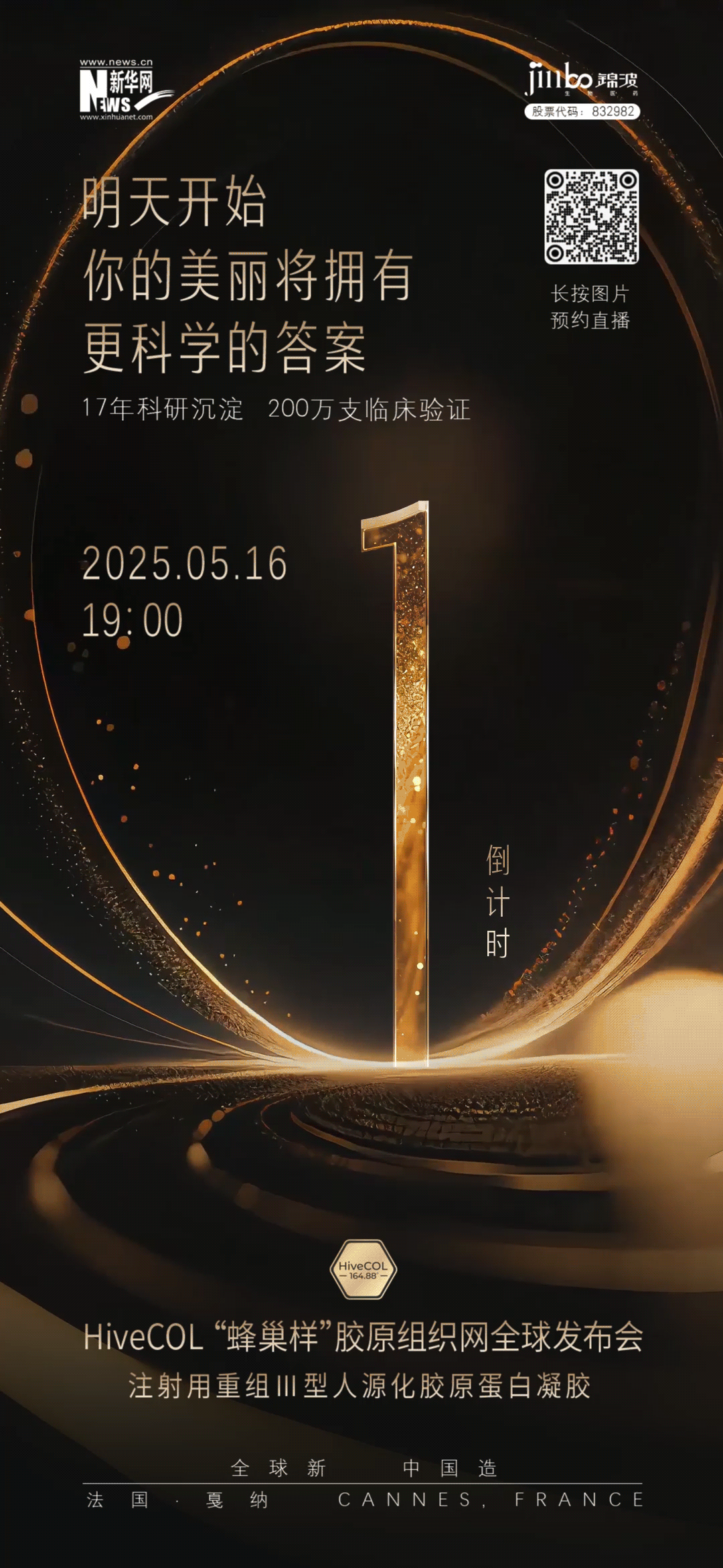 5月16日,锦波生物将于第78届戛纳电影节“2025芭莎戛纳之夜”,面向全球发布hivecol“蜂巢样”胶原组织网技术。明天,让我们将目光齐聚戛纳,共同见证这项“全球新·中国造”原创科技的发布,揭晓重组人源化胶原蛋白新材料的全新可能。