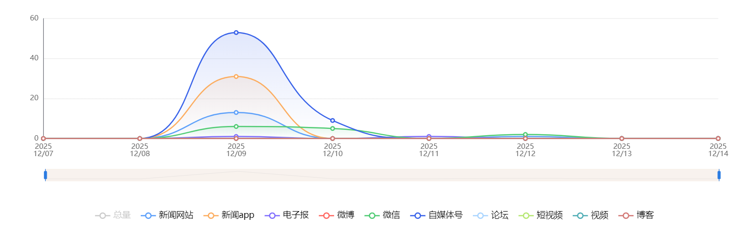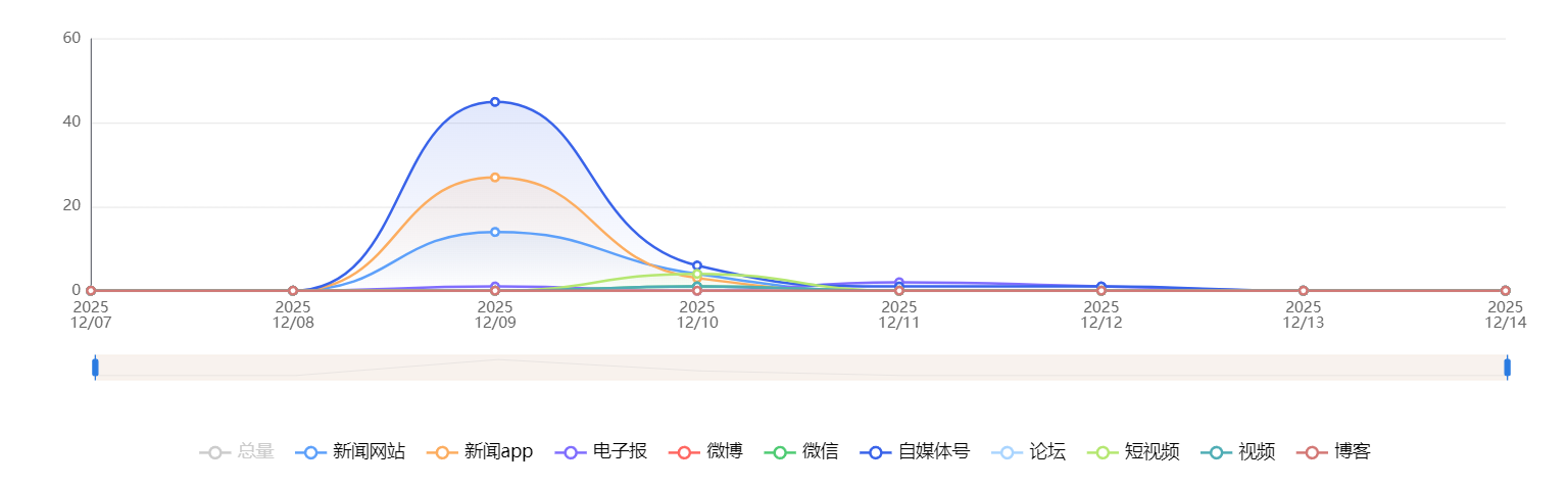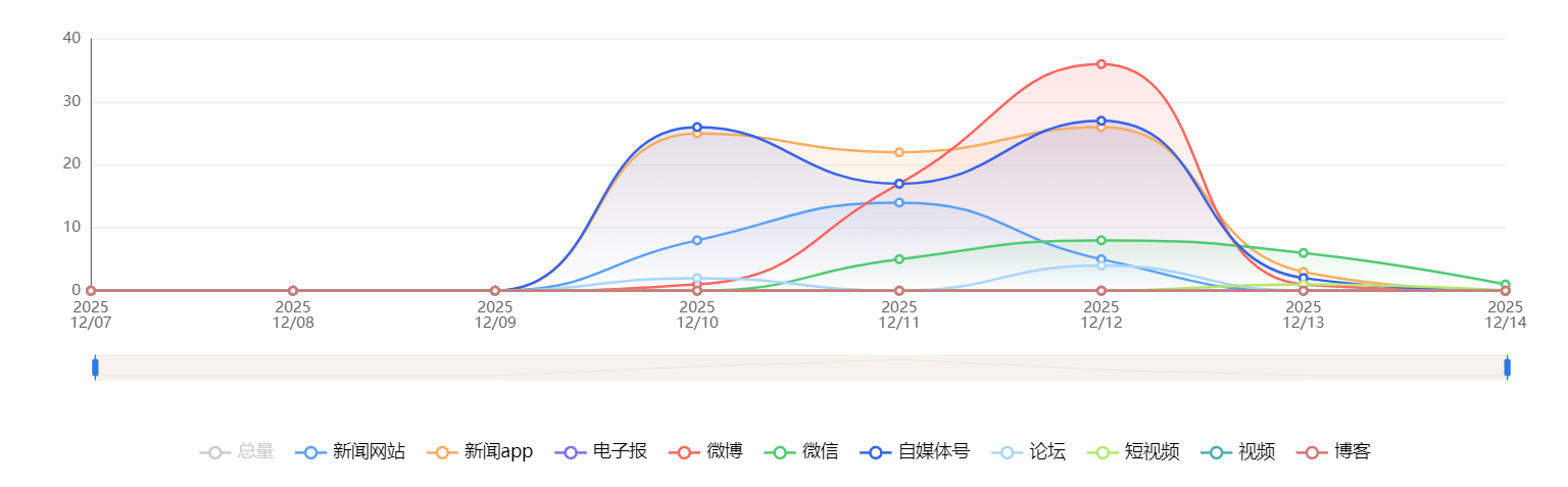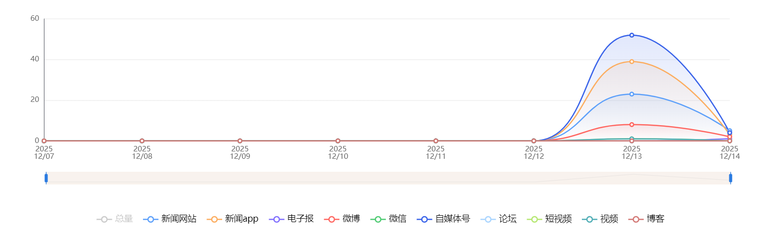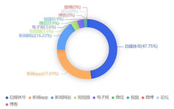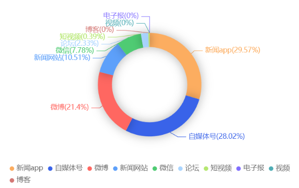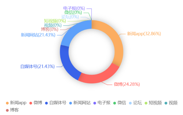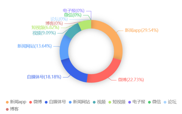 截至目前,该文章在互联网上传播总量共44篇。各信源的信息发布情况中,新闻app占比最高,其次是微博。(数据来源:新华睿思数据云图分析平台)