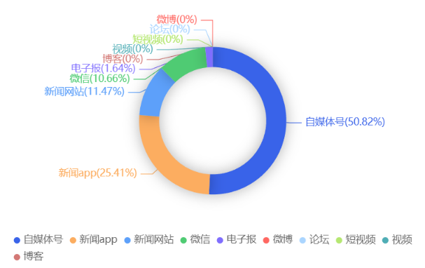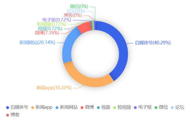 截至目前,该文章在互联网上传播总量共41篇。各信源的信息发布情况中,自媒体号占比最高,其次是新闻app。(数据来源:新华睿思数据云图分析平台)