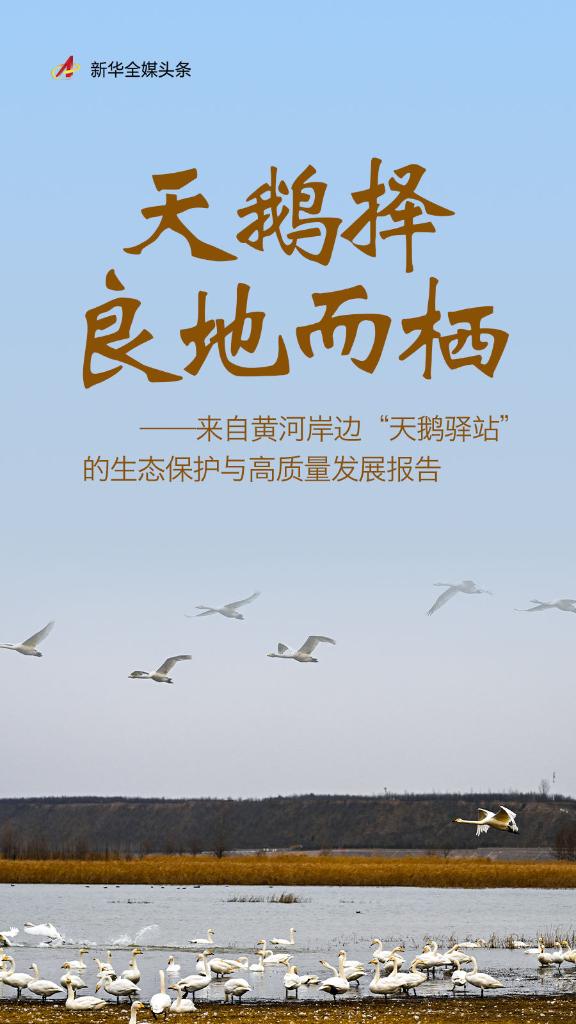 眼下,正值黄河湿地天鹅数量的峰值期。万顷湖天碧,一池雪花白,勾勒出人与自然和谐共生的美好画卷,也见证着黄河两岸生态保护和高质量发展的显著成效。(记者:赵东辉、晏国政、王皓)