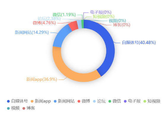 截至目前,该文章在互联网上传播总量共84篇。各信源的信息发布情况中,自媒体号占比最大,其次是新闻app。(数据来源:新华睿思·数媒智慧分析平台)