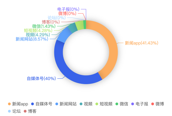 截至目前,该文章在互联网上传播总量共70篇。各信源的信息发布情况中,新闻app占比最高,其次是自媒体号。(数据来源:新华睿思数据云图分析平台)