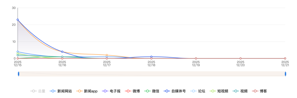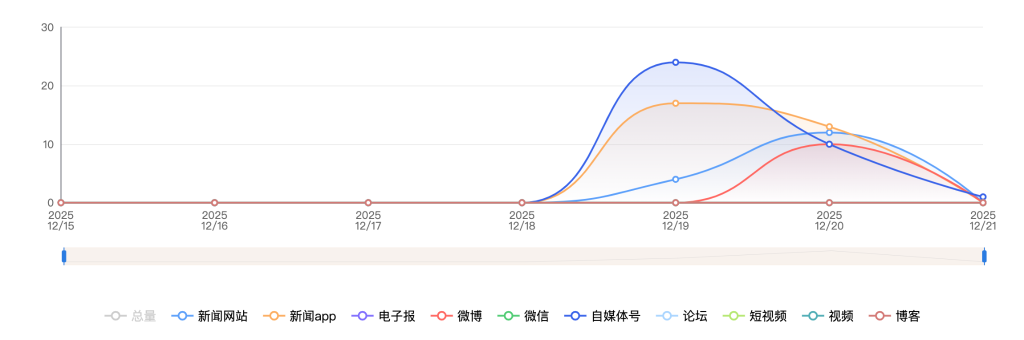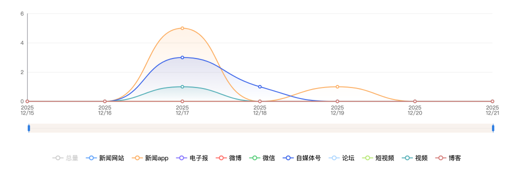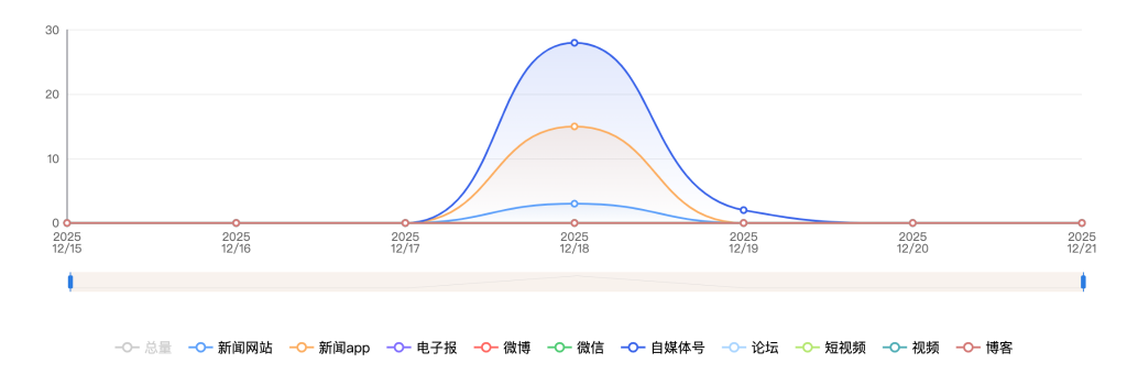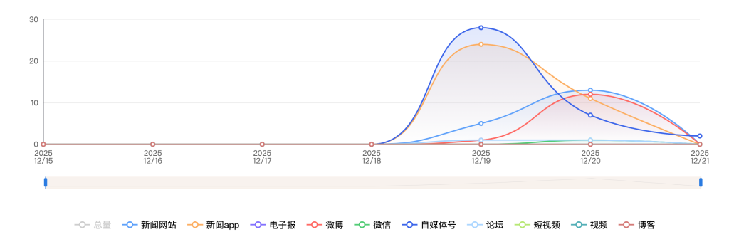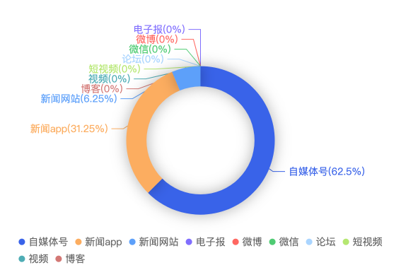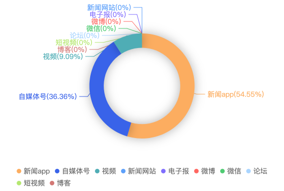 截至目前,该文章在互联网上传播总量共11篇。各信源的信息发布情况中,新闻app占比最高,其次是自媒体号。(数据来源:新华睿思数据云图分析平台)