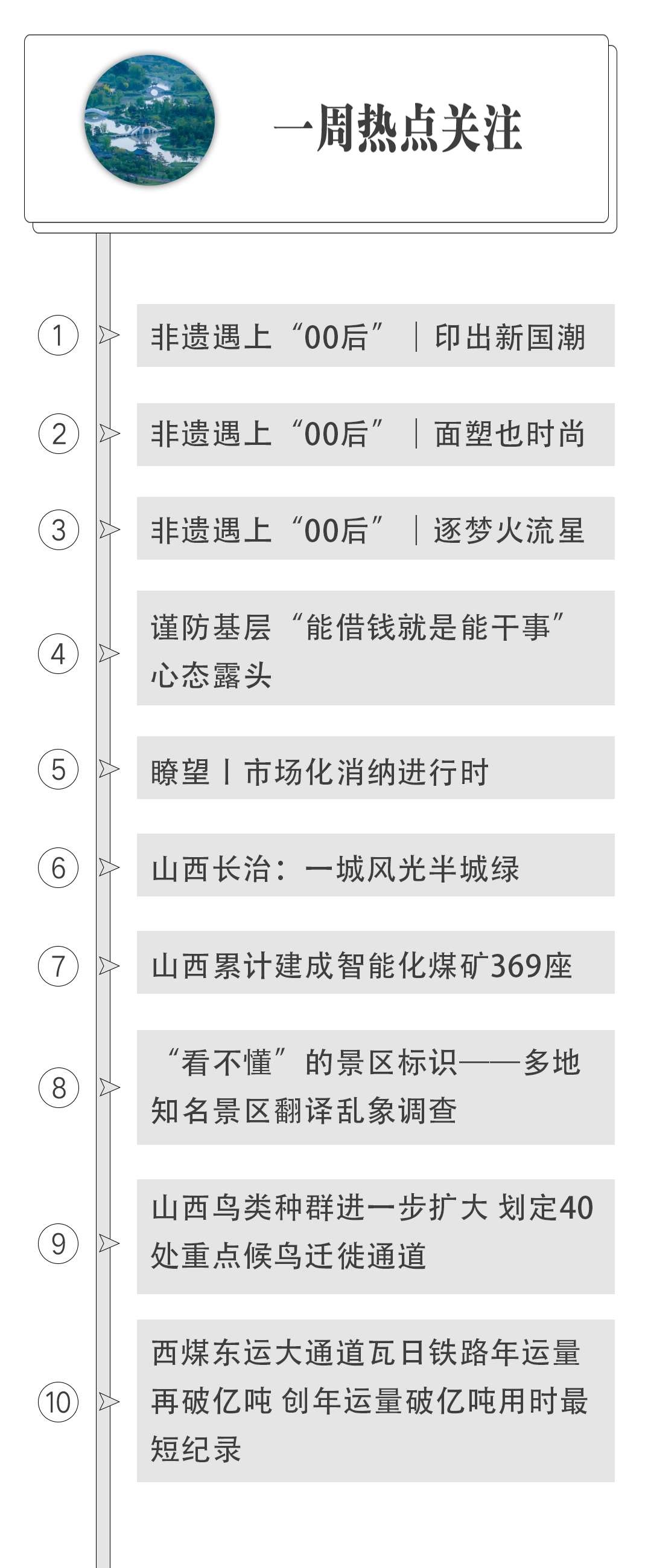 “00后”大胆创新,将新的流行元素融入传统技艺,让古老的非物质文化遗产变成年轻人喜闻乐见的新国潮;在长治,自然山水景观与现代城市功能交融,绘就了人与自然和谐共生的美丽画卷;煤炭大省山西,在保障国家煤炭供应的同时,加快向智能绿色迈进,让煤炭开采更智能、更清洁……12月15日-21日,新华社记者讲述“00后”的非遗传承故事,聚焦三晋大地煤矿智能化建设。
