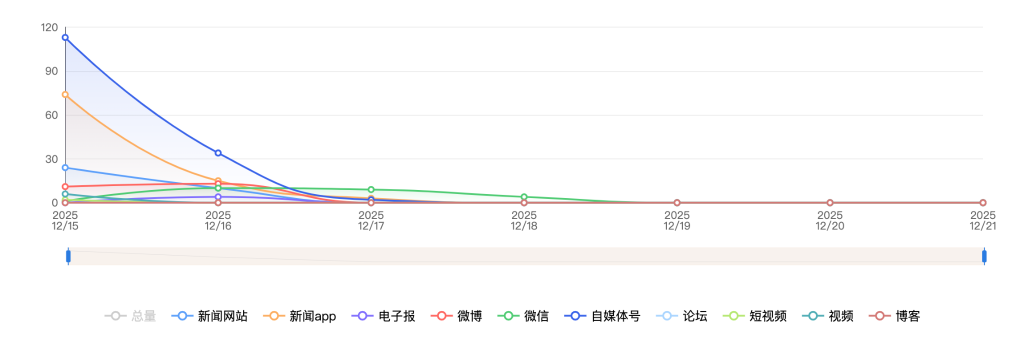 截至目前,该文章在互联网上传播总量共335篇。各信源的信息发布情况中,自媒体号占比最高,其次是新闻app。(数据来源:新华睿思数据云图分析平台)