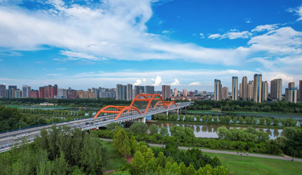 蓝天白云下的临汾。(资料图)新华网发 (李虎威 摄)