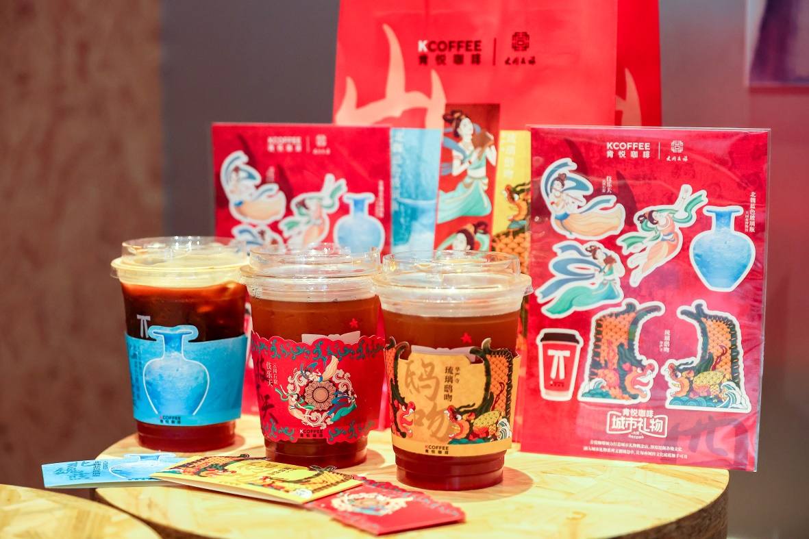 近日,坐落在大同云冈石窟景区的肯悦咖啡大同城市礼物主题店正式开业。肯悦咖啡携大同文旅集团旗下的“大同礼物”亮相,同步推出限定款产品“山西陈醋风味气泡美式”的线下首发品鉴,打造富有大同文化与美食特色的社交体验空间。