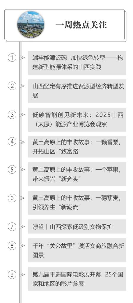 秋日的黄土高原,天高云阔,三晋大地一派崭新气象。在大同,风电光伏新能源基地建设正酣。在运城,黄河岸畔红彤彤的苹果挂满枝头,田间地头洋溢着丰收的喜悦。今年7月,习近平总书记在山西考察时强调,山西要认真落实党中央关于促进中部地区加快崛起、推动黄河流域生态保护和高质量发展等战略部署,坚持稳中求进工作总基调,完整准确全面贯彻新发展理念,统筹好发展和安全,努力在推动资源型经济转型发展上迈出新步伐,奋力谱写三晋大地推进中国式现代化新篇章。遵循总书记指明的转型发展科学路径,山西咬定青山不放松,坚定有序推进转型发展,聚焦能源转型、产业升级、适度多元发展,着力构建体现山西特点、具有比较优势的现代化产业体系,加快在转型发展中实现高质量发展、可持续发展。(新华社记者赵东辉 梁晓飞 王劲玉)