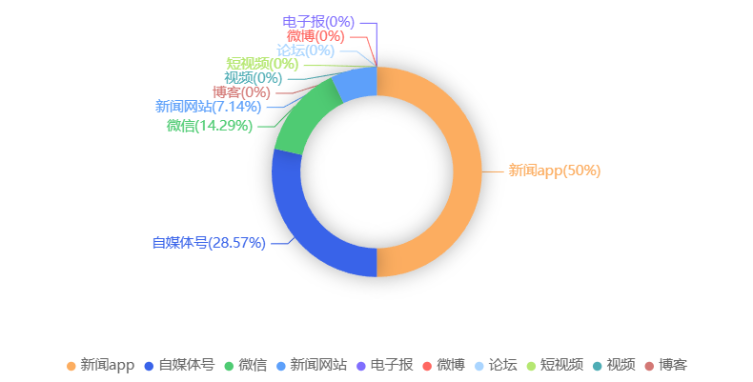 截至目前,该文章在互联网上传播总量共7篇。各信源的信息发布情况中,新闻app占比最大,其次是自媒体号。(数据来源:新华睿思·数媒智慧分析平台)