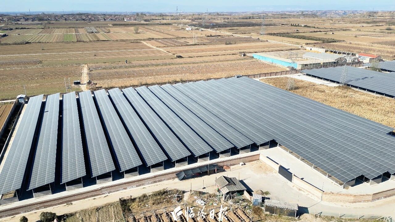 不远处,里村的“牧光互补”湖羊育肥基地已准备就绪。冬日暖阳下,深蓝色光伏板覆盖的现代化羊舍格外醒目。