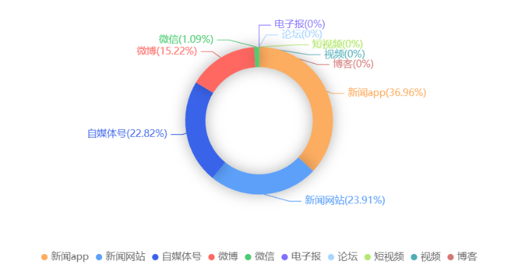 截至目前,该文章在互联网上传播总量共92篇。各信源的信息发布情况中,新闻app占比最大,其次是新闻网站,占比分别为36.96%、23.91%。(数据来源:新华睿思·数媒智慧分析平台)