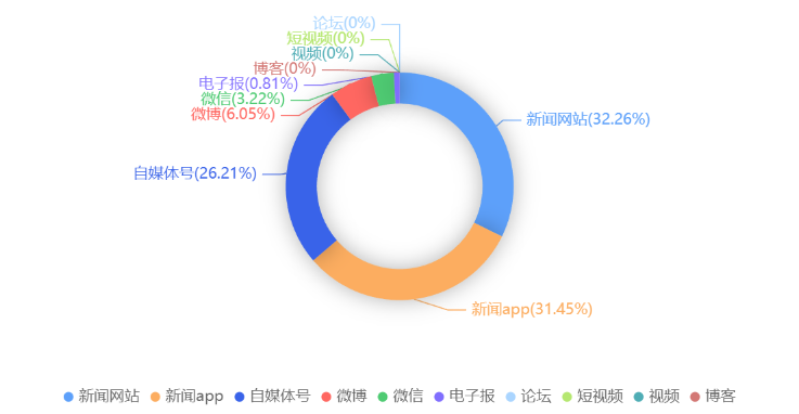 截至目前,该文章在互联网上传播总量共248篇。各信源的信息发布情况中,新闻网站占比最大,其次是新闻app,占比分别为32.26%、31.45%。(数据来源:新华睿思·数媒智慧分析平台)
