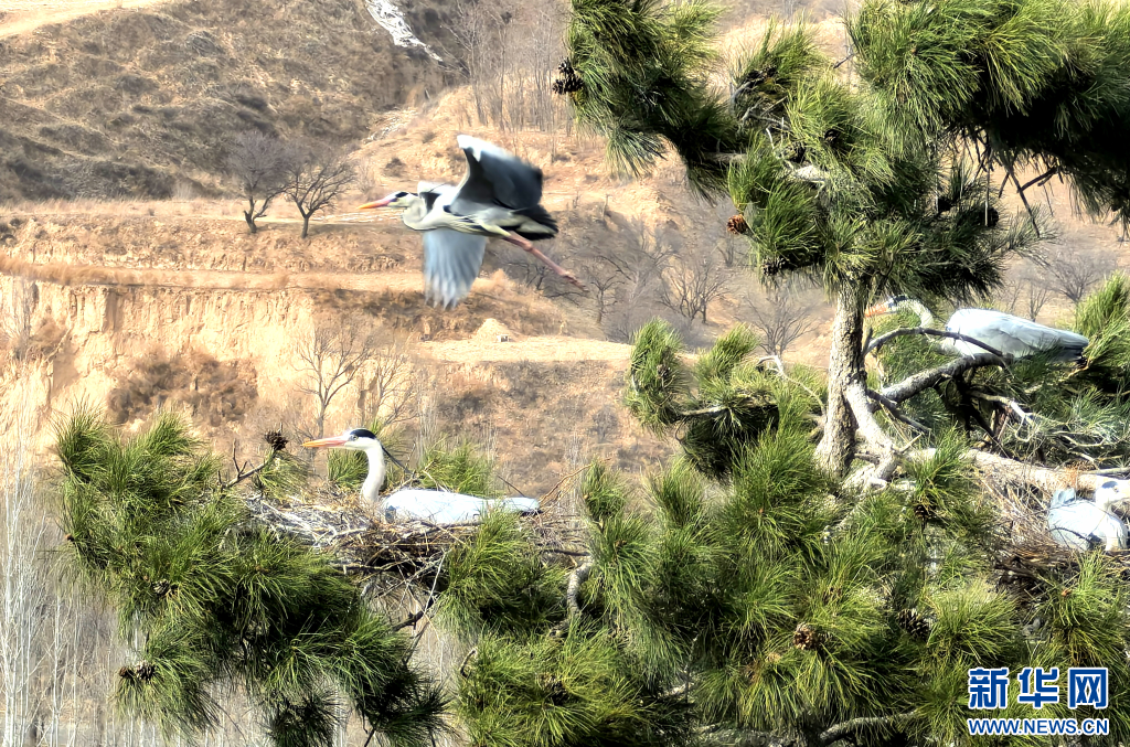 春日的吕梁山,数百只苍鹭迁徙而来,在此筑巢孵卵。不少摄影师来到山西吕梁方山县积翠镇刘家庄村,记录苍鹭或静或动或翱翔的画面,也捕捉到了两只鸟儿嬉戏缠斗的场面。