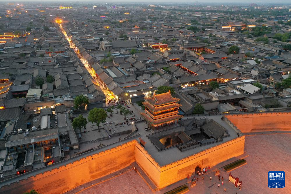 这是平遥古城夜景(2024年5月9日摄,无人机照片)。新华社记者 詹彦 摄