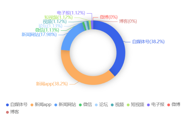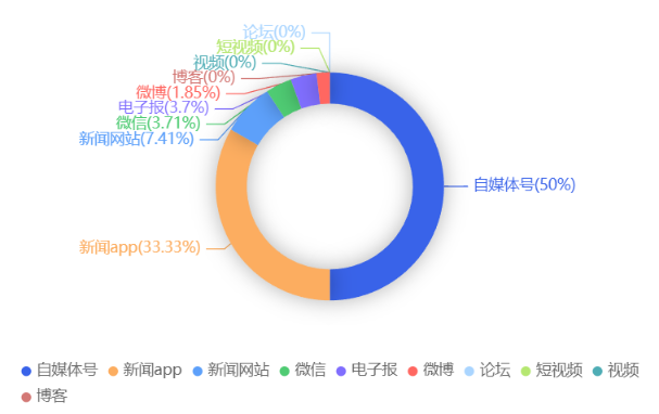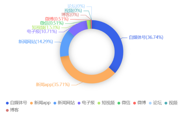 截至目前,该文章在互联网上传播总量共96篇。各信源的信息发布情况中,自媒体号占比最高,其次是新闻app。(数据来源:新华睿思数据云图分析平台)