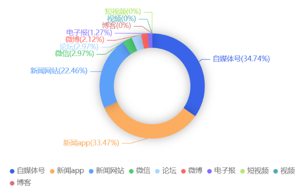 截至目前,该文章在互联网上传播总量共75篇。各信源的信息发布情况中,新闻app占比最高,其次是自媒体号。(数据来源:新华睿思数据云图分析平台)
