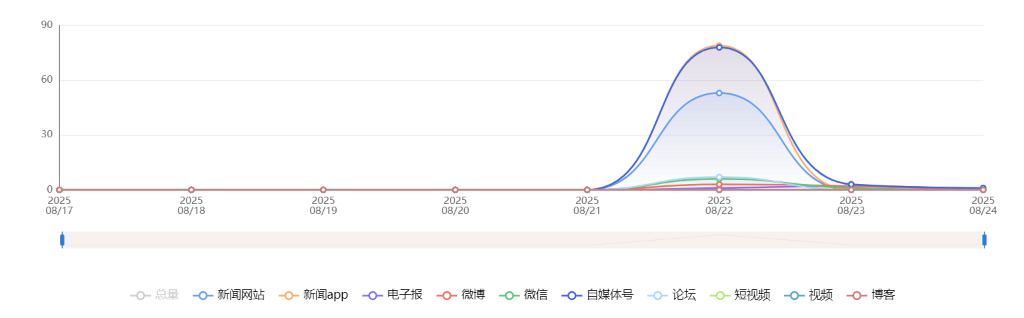 截至目前,该文章在互联网上传播总量共89篇。各信源的信息发布情况中,新闻app和自媒体号占比最高,其次是新闻网站。(数据来源:新华睿思数据云图分析平台)