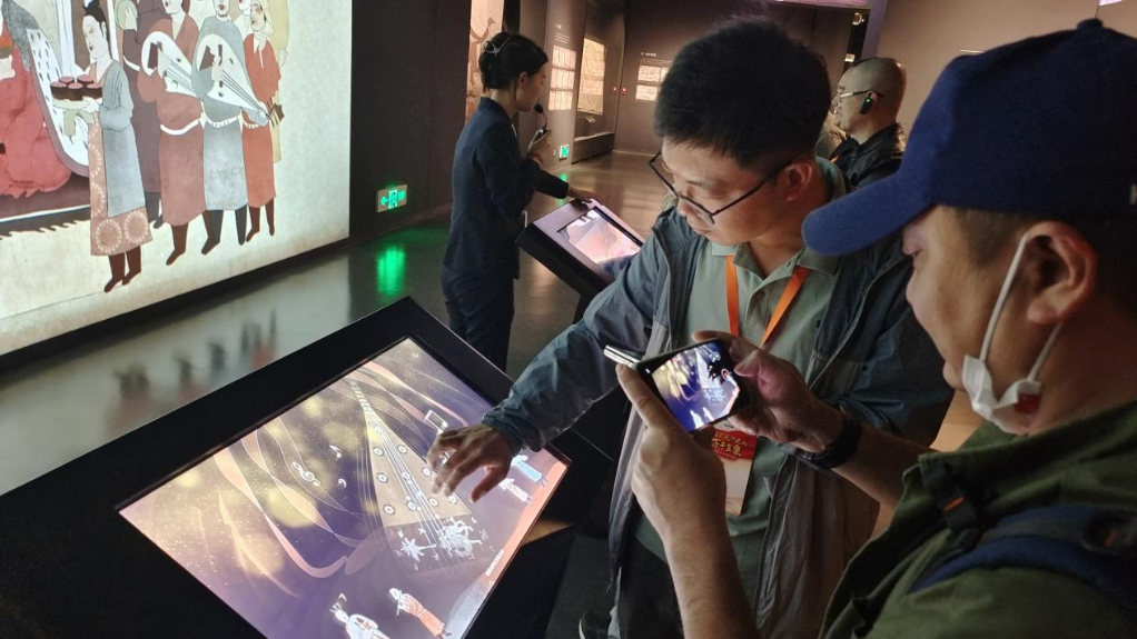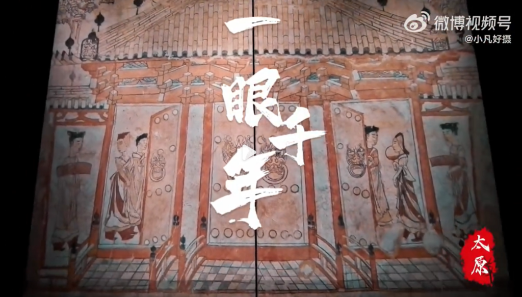 网络博主记录壁画《宴饮图》数字化互动机体验过程。