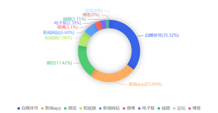截至目前,该文章在互联网上传播总量共225篇。各信源的信息发布情况中,微博占比最大,其次是新闻app。(数据来源:新华睿思·数媒智慧分析平台)