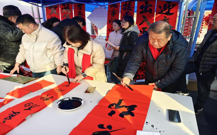 2月4日,书法爱好者在第三届翼城县春节欢乐嘉年华活动上书写春联。新华网发
