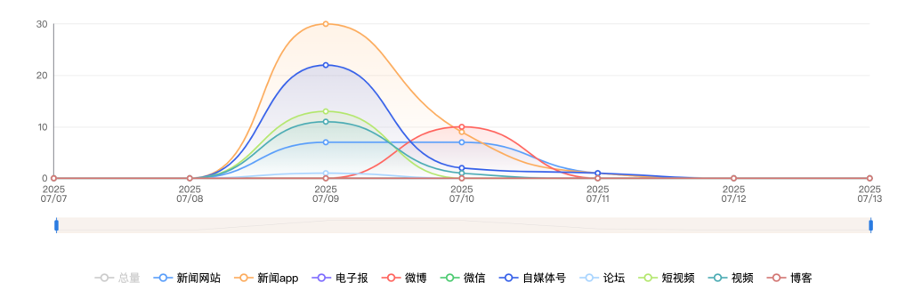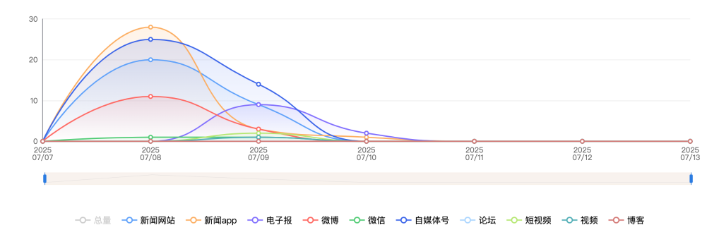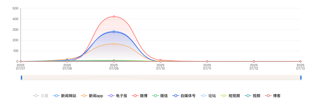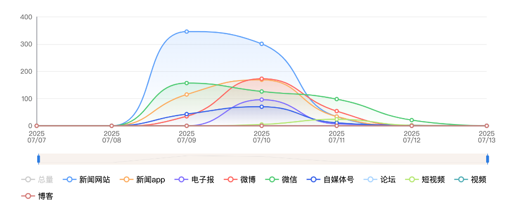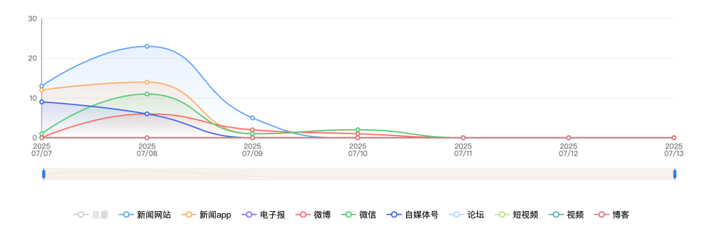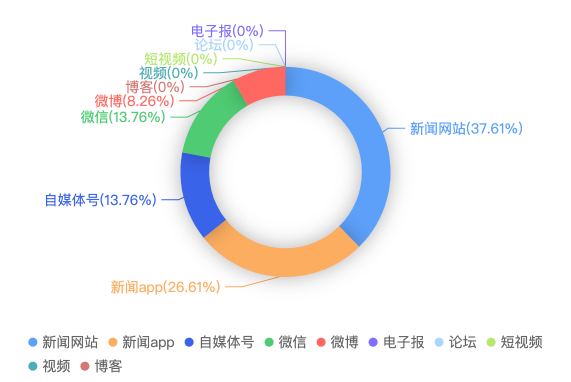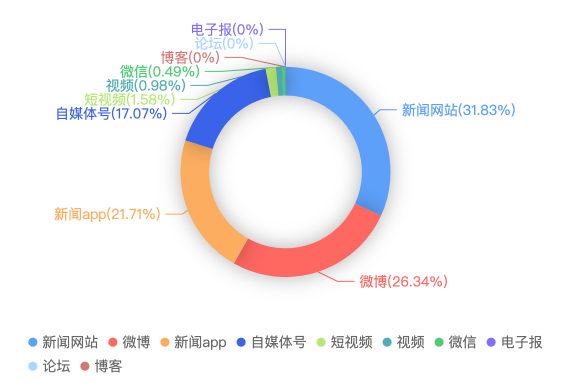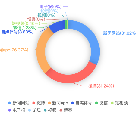 截至目前,该文章在互联网上传播总量共861篇。各信源的信息发布情况中,新闻网站占比最大,其次是微博。(数据来源:新华睿思·数媒智慧分析平台)