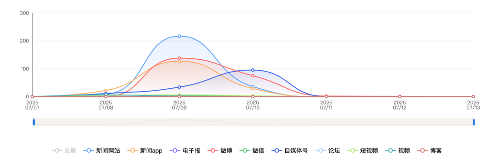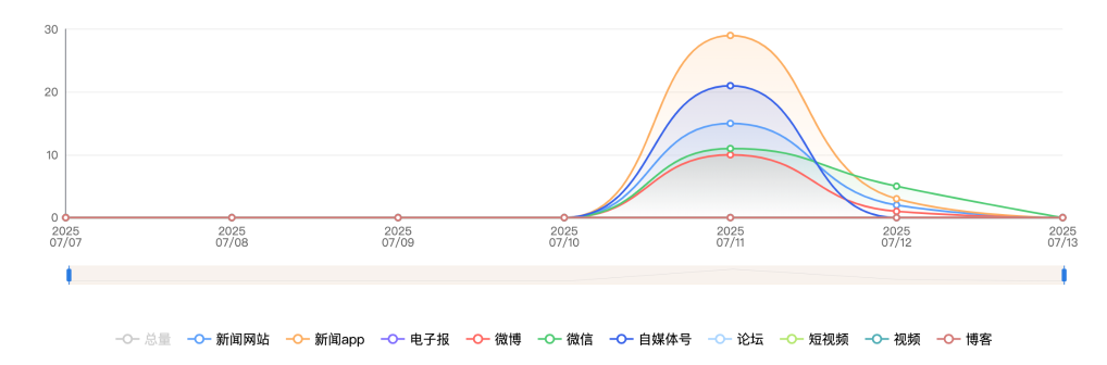 截至目前,该文章在互联网上传播总量共204篇。各信源的信息发布情况中,新闻app占比最大,其次是自媒体号。(数据来源:新华睿思·数媒智慧分析平台)