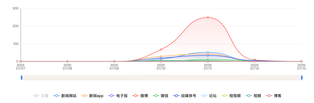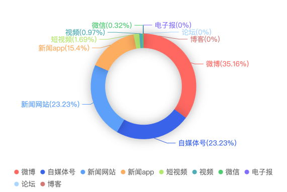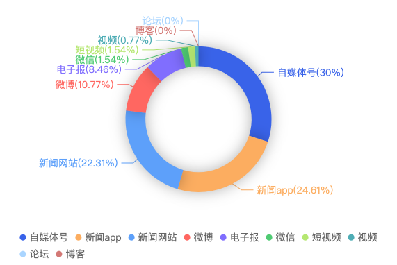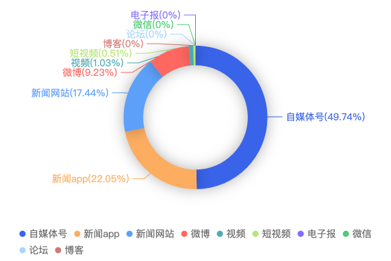 截至目前,该文章在互联网上传播总量共1240篇。各信源的信息发布情况中,微博占比最大,其次是自媒体号。(数据来源:新华睿思·数媒智慧分析平台)