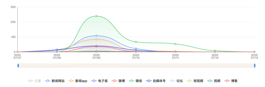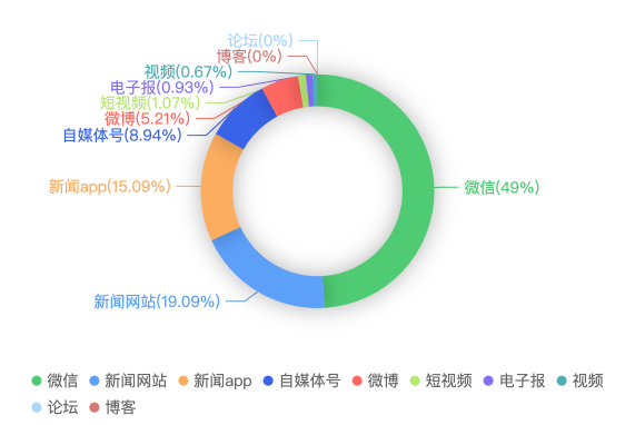截至目前,该文章在互联网上传播总量共749篇。各信源的信息发布情况中,微信占比最大,其次是新闻网站。(数据来源:新华睿思·数媒智慧分析平台)