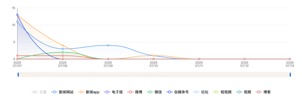 截至目前,该文章在互联网上传播总量共820篇。各信源的信息发布情况中,新闻网站占比最大,其次是微博。(数据来源:新华睿思·数媒智慧分析平台)